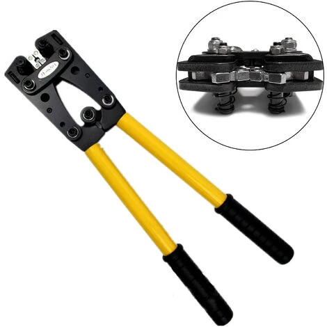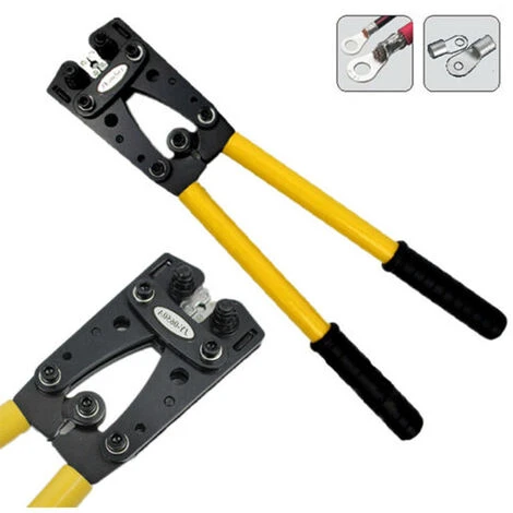 Cette pince à sertir pratique convient comme outil de sertissage de cosses tubulaires et de terminaisons. Les différentes mâchoires de sertissage sous forme de disques profilés intégrés en acier à outils trempé se règlent par simple rotation.