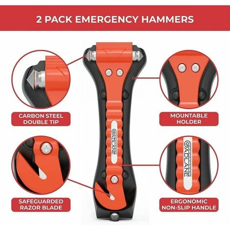 MARTEAU BRISE VITRE COUPE CEINTURE POUR VOITURE – Chaque achat comprend deux marteaux d’urgence de voiture de premiers secours de haute qualité. La tête pointue à double pointe en acier au carbone est durcie avec précision pour briser les vitres du véhicule en quelques secondes.