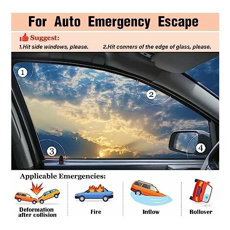 El juego incluye: incluye 2 juegos de martillos de emergencia. Regálelo a su hijo o miembro de la familia para su tranquilidad mientras conduce.