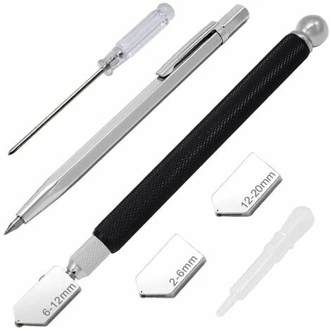 1.Matériel: Le coupe-verre en carbure se compose d’une tête de filière en aluminium + d’une poignée en alliage de fer + d’une molette de coupe en aluminium. Longueur du manche : 17,5 cm.
