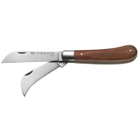Lames en acier inoxydable poliLame de type serpette, longueur : 65 mmLame droite, longueur : 80 mmManche en boisLongueur fermé : 100 mmLongueur totale : 165/180 mm