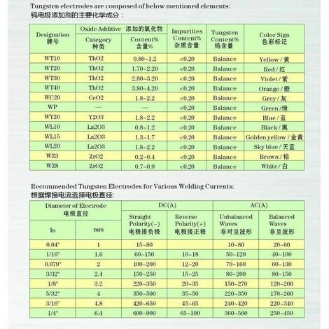 WL20 bleu, convient au soudage CC de l’acier et de l’acier inoxydable et au soudage CA du magnésium et des alliages d’aluminium, etc.