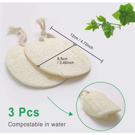 Le paquet comprend : 3 Luffa Éponge Cuisine, Chaque loofah a une taille de 12*8.8cm, la taille est appropriée, facile à tenir, des plantes naturelles pures, les deux côtés peuvent être utilisés, il y a un cordon sur le côté pour une suspension facile et un séchage rapide pour la prochaine utilisation.