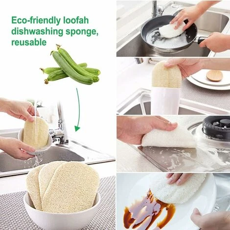 Elimination rapide de l’huile : Matériau végétal vert et écologique, biodégradable, brosse éponge de cuisine compostable et réutilisable. L’éponge Loofah biologique est plus facile à décomposer les taches de graisse. Facile à laver et ne blessant pas vos mains, c’est une bonne aide pour les fournitures de cuisine.