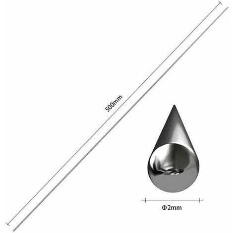 Diamètre 2,0 mm, chacun de 50 cm de long. Notre fil de soudure en aluminium a été plié à l’avance pour économiser de l’espace dans le paquet, et vous pouvez le restaurer.