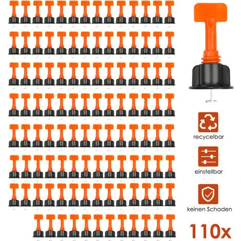 110 pièces : 110 x systèmes de nivellement pour carreaux, 4 x clés spéciales.