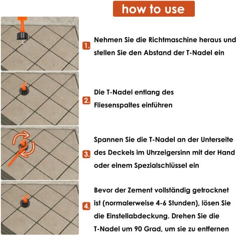 【Système de nivellement plus rapide et plus efficace】 est réutilisable. Il était assez facile de le fixer ou de l’enlever avec une clé spécialeAméliorez la vitesse d’installation des carreaux et réduisez la fatigue / le stress de l’installateur | pratiquement