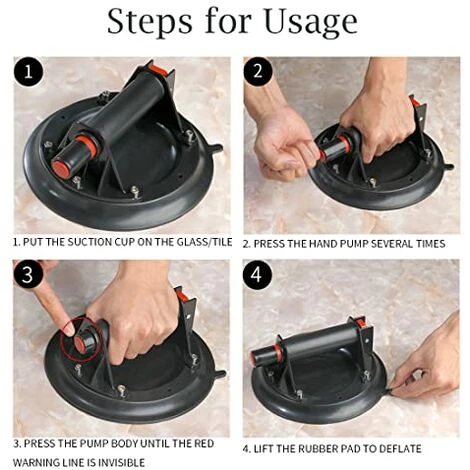 Placez la ventouse sur une surface lisse sans eau ni huile et appuyez fermement sur la pompe d’aspiration pour aspirer l’air.
