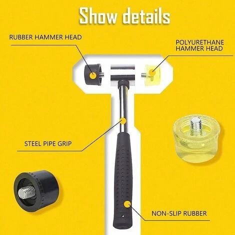Facile à utiliser : la tête du marteau en caoutchouc souple peut être déplacée et remplacée, et elle est également dotée d’un caoutchouc antidérapant prise en main, sûre et pratique à utiliser.
