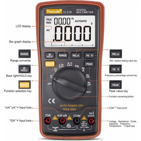 【Fonctions multiples】une mesure précise de la tension AC / DC, du courant AC / DC (DC est la valeur par défaut), de la résistance, de la continuité, de la fréquence, de la capacité et de la diode, de la température du liquide, de la mise sous / hors tension