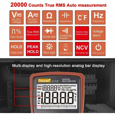 【Facile à utiliser】Tournez le commutateur rotatif, certaines bornes clignotent, indiquant les bornes à insérer. Il est très facile d’insérer les cordons de test. Grand écran LCD rétroéclairé de 2,9 pouces. Double affichage avec graphique à barres. La