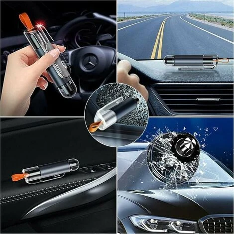 à côté de la fenêtre de la voiture. Peut être utilisé comme outil d’évacuation. [Outil de sécurité deux-en-un] Le marteau de sécurité est doté à la fois d’une lame coupante et d’un dispositif à percussion, qui peuvent facilement casser la vitre à double couche, vous permettant de descendre rapidement de la voiture en cas d’urgence.