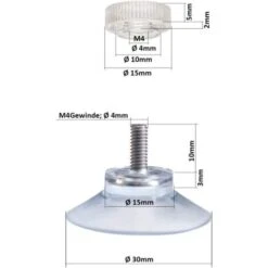 DIYexpert 8 X Ventouse 40 Mm Avec Filetage M4x10mm Avec écrous Moletés Transparent – Made In Germany