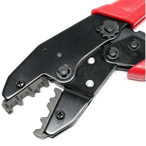 La pince à sertir est fabriquée en acier inoxydable. Des poignées ergonomiques assurent une utilisation confortable.