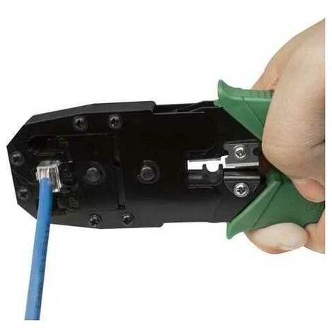 Cette pince à sertir métallique avec crémaillère centrale (force au serrage) s’adapte aux principaux connecteurs RJ :