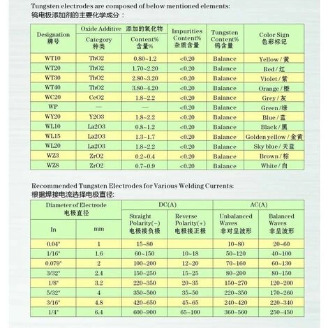 WL20 bleu, convient au soudage CC de l’acier et de l’acier inoxydable et au soudage CA du magnésium et des alliages d’aluminium, etc.