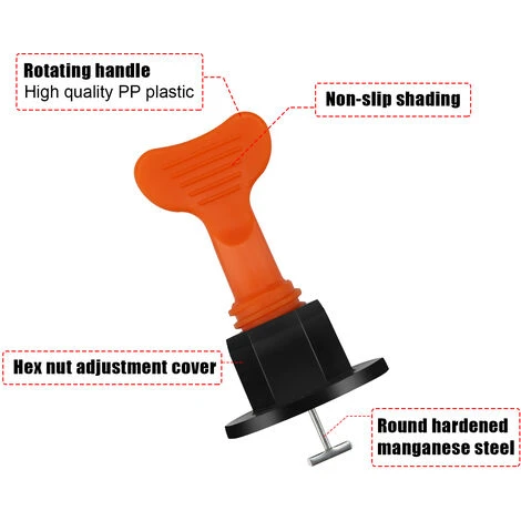 【Système de nivellement plus rapide et plus efficace】 est réutilisable. Il était assez facile de le fixer ou de l’enlever avec une clé spécialeAméliorez la vitesse d’installation des carreaux et réduisez la fatigue / le stress de l’installateur | pratiquement