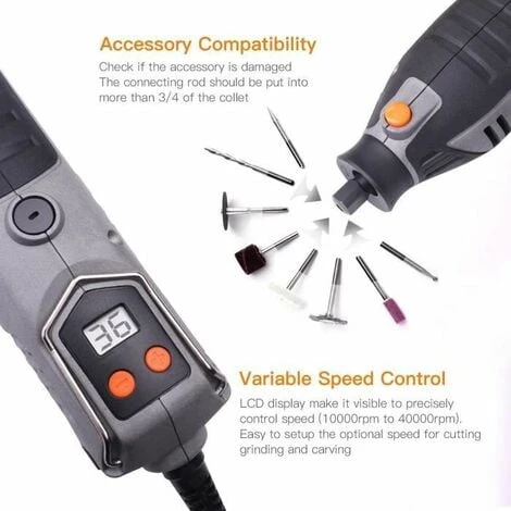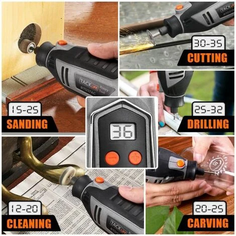 - Moteur puissant – La puissance de 200W vous permet d’effectuer plus facilement les travaux difficiles et de couvrir la plus large gamme de projets créatifs et de bricolage tels que: la coupe, le meulage, le polissage, le forage, le dérouillage, la sculpture et d’autres projets qui n’attendent que vous à explorer!
