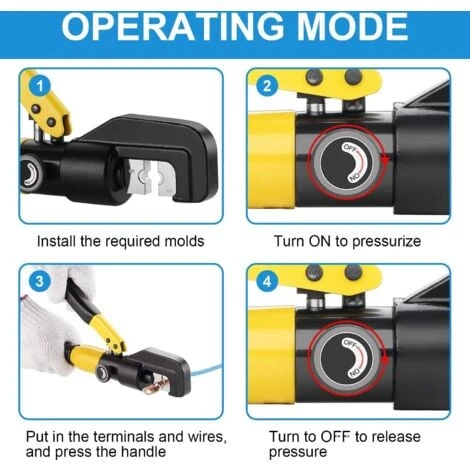 【Conception humanisée】: Les outils de sertissage hydrauliques sont spécialement conçus pour connecter et sceller le câblage électrique lors de l’installation d’équipements et de câblages électriques. Avec cette pince à sertir professionnelle, vous pouvez facilement sertir des fils et des connecteurs bout à bout. Opération simple. Il fournit une opération de sertissage plus fiable et pratique.