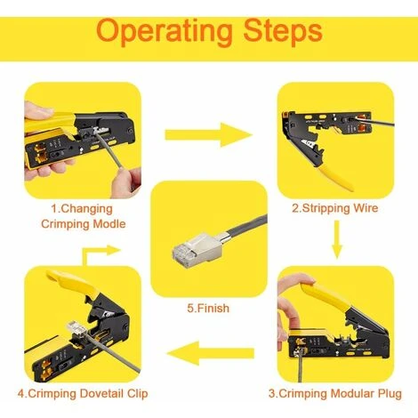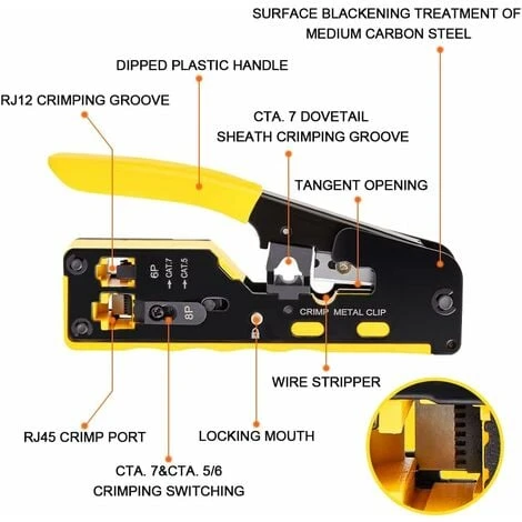 【Conception compacte】 petite taille avec conception verrouillable, ce qui rend l’outil de sertissage rj45 facile à ranger et à utiliser ; combine la fonction de sertissage et de fixation de boucle à l’extrémité du connecteur en un outil.
