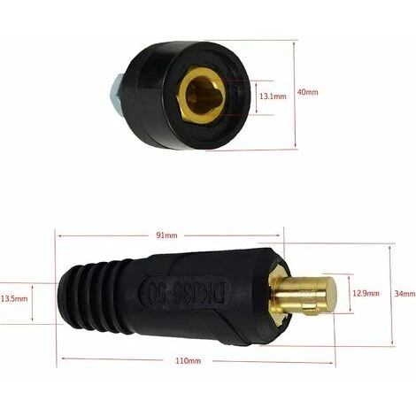 Connecteur de câble de soudage TIG à raccord rapide – Courant nominal : 315 A – Section du fil : 35–50 mm2 – Taille de montage : 5,7 mm x 33 mm x 29,8 mm. Contenu :
