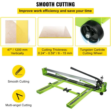 Ces coupe-carreaux en céramique sont fabriqués en acier de haute qualité, structure brève et simple, pratique et sûr à utiliser, coupe rapide. Avec Max. Capacité de coupe Largeur de coupe 1200 mm et épaisseur de coupe 6 – 15 mm. Idéal pour couper les matériaux en pierre, y compris les carreaux de sol normaux, les carreaux polis, etc.