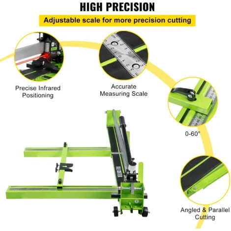 - Découpe de Positionnement de Précision: La fonction de positionnement infrarouge laser récemment améliorée peut améliorer efficacement la précision de ce coupe-carreaux en porcelaine. Et trois règles en aluminium peuvent effectuer des coupes rapides de différentes tailles en continu.