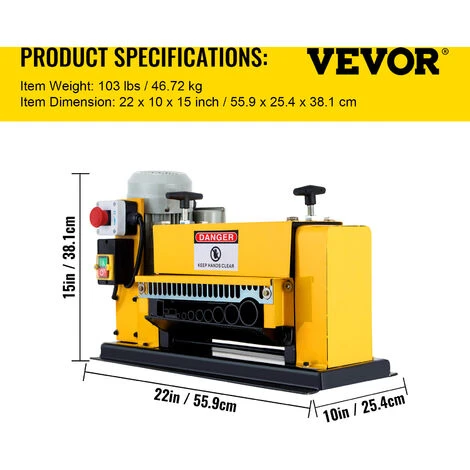 - Efficacite de Denudage Superieure : Cette pince a denuder est equipee deun moteur a induction monophase de 370 W motorise pour vous faire gagner du temps, des efforts et de largent. La boite de vitesse permet un denudage rapide de 20 m par minute. La conception permettant deeconomiser du travail et augmente la securite et la facilite.